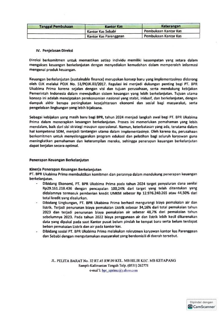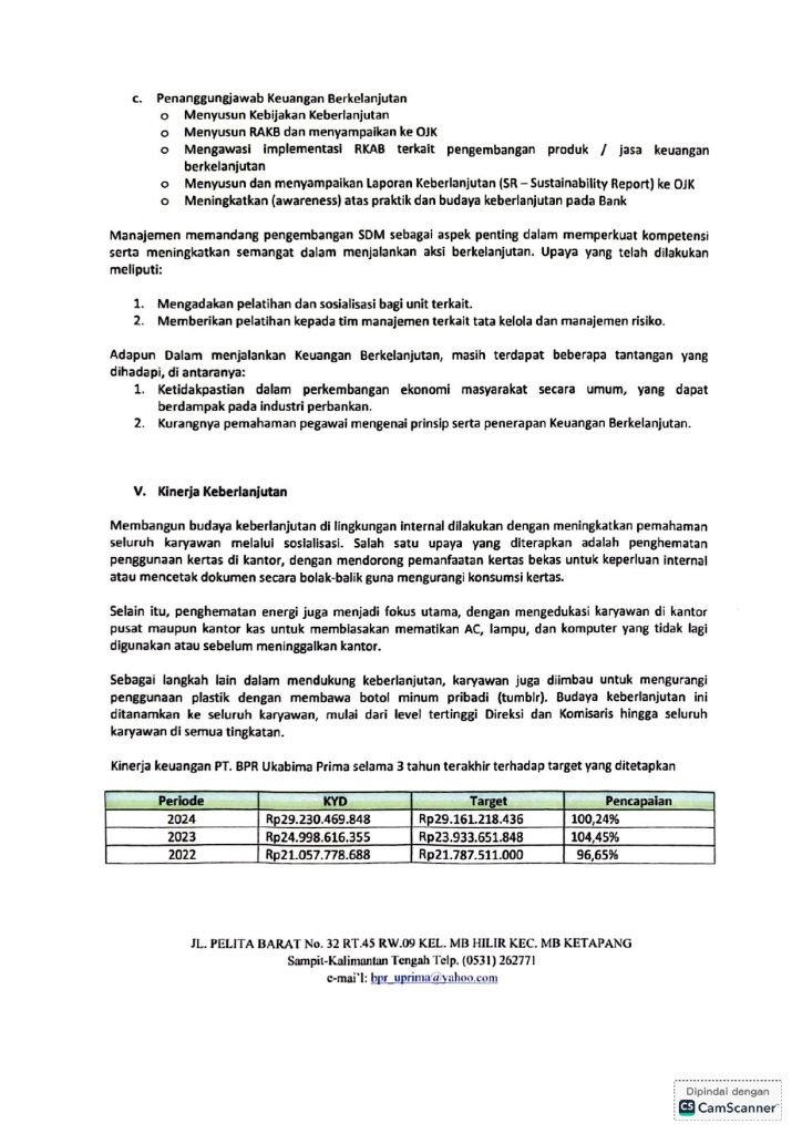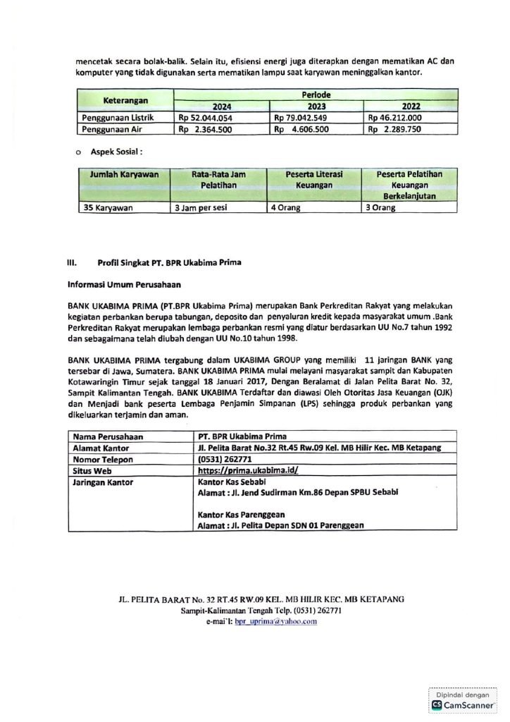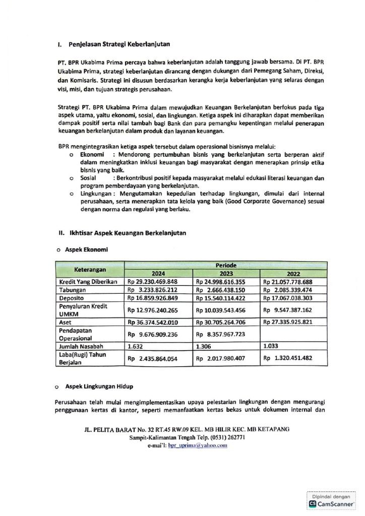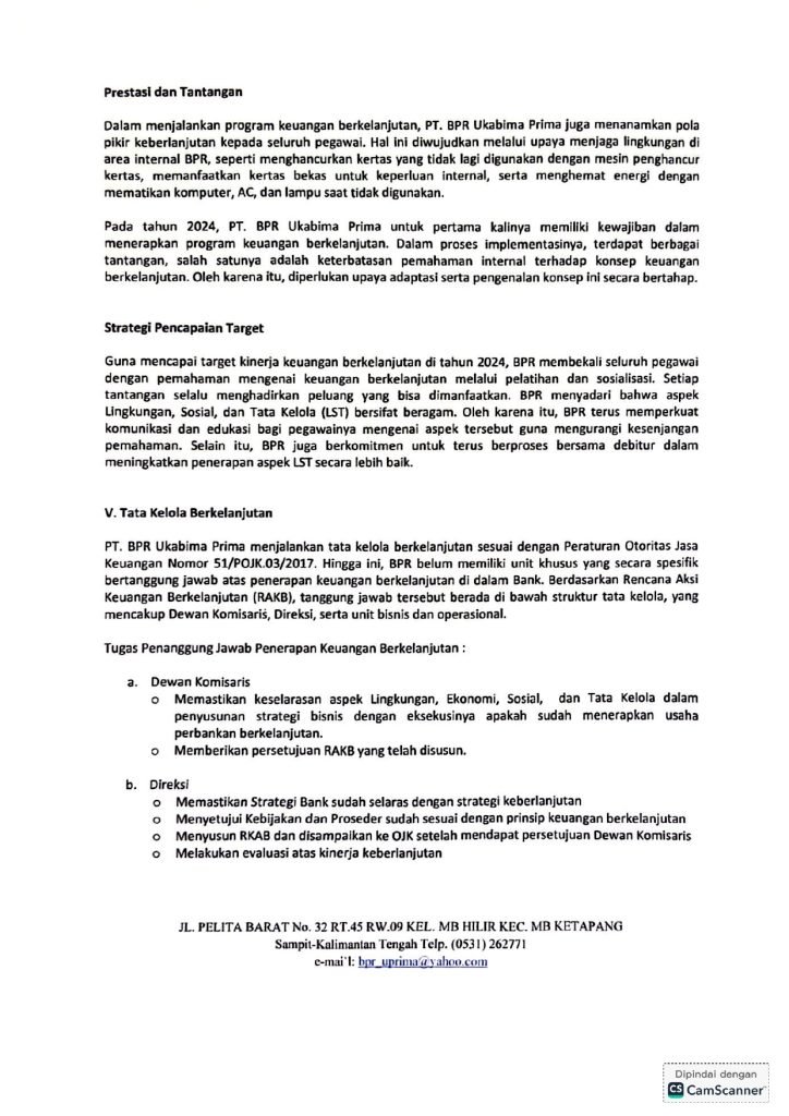 LAPORAN PENERAPAN KEUANGAN BERKELANJUTAN TAHUN 2024 PT. BPR UKABIMA PRIMA