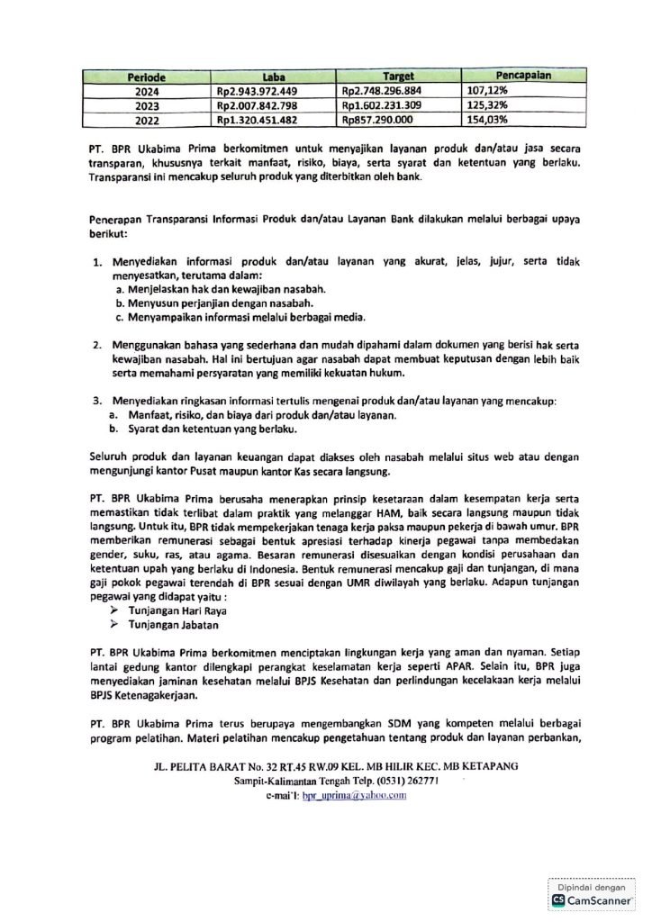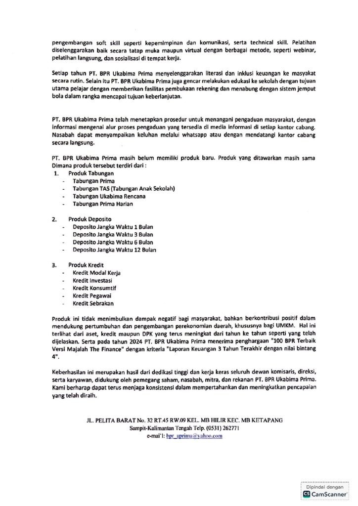 LAPORAN TAHUNAN 2024 PT. BPR UKABIMA PRIMA