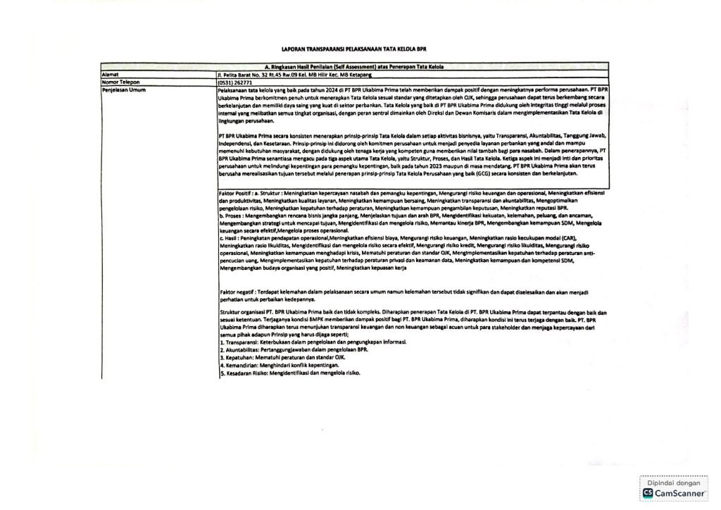 • LAPORAN TRANSPARANSI PELAKSANAAN TATA KELOLA TAHUN 2024 PT. BPR UKABIMA PRIMA