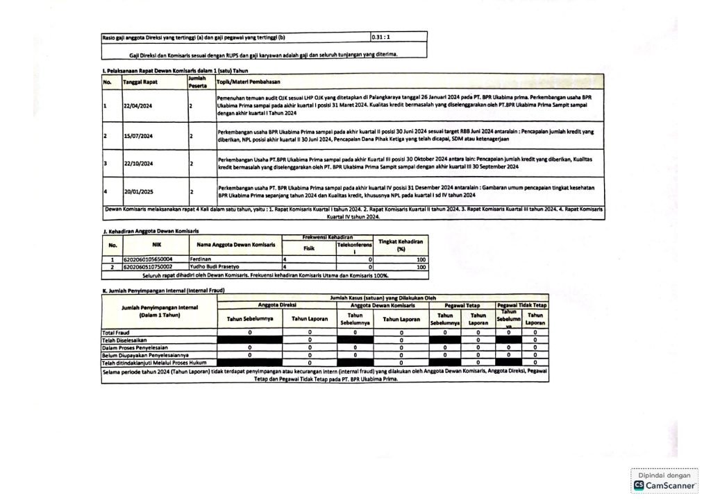 LAPORAN TRANSPARANSI PELAKSANAAN TATA KELOLA TAHUN 2024 PT. BPR UKABIMA PRIMA